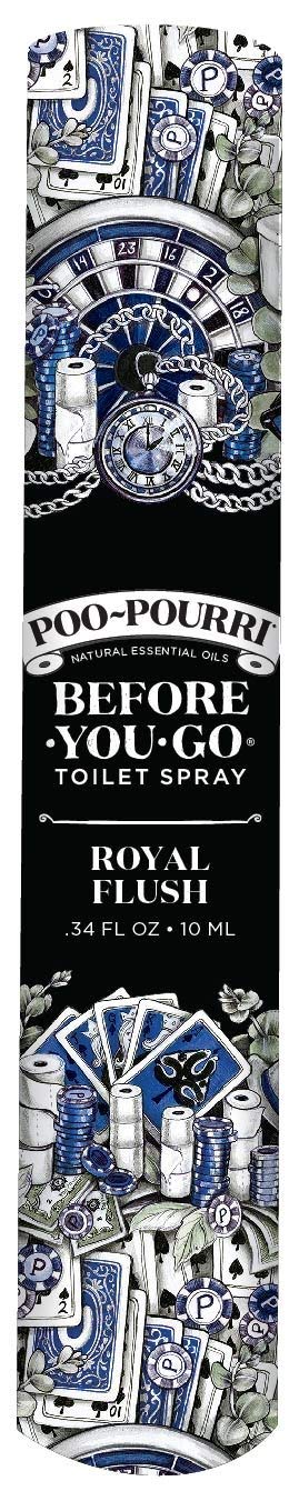The new and improved 10 ml travel sized Potpourri Royal Flush scent sprayer uses a proprietary formula of Essential oils and other natural compounds that prevents bathroom odors before they begin! Just spray Potpourri into the bowl before you go to create a protective barrier on the water surface that will trap unpleasant bathroom odors beneath the surface and keep them out of the air. All you'll smell is a refreshing bouquet made from Eucalyptus and spearmint! Each 10 ml bottle provides 2 1/2 times more than our previous offering; now up to 20 uses.