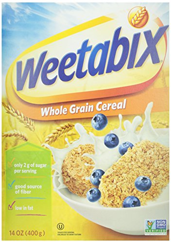 WEETABIX WHOLE GRAIN CEREAL PROVIDES 365 WHOLE GRAIN KERNELS PER BISCUIT. CONSIDERED TO BE A HEART HEALTHY CEREAL, WEETABIX IS AN EXCELLENT SOURCE OF FIBER, CONTAINING 4 GRAMS OF FIBER PER 2 BISCUIT SERVING. EVERY 14 OZ. BOX OF WEETABIX IS FREE OF GMOS, CHOLESTEROL, TRANS AND SATURATED FATS. WE ALSO DON’T ADD ANY ARTIFICIAL COLORS, FLAVORS OR PRESERVATIVES. SEE NUTRITION FACTS PANEL FOR ALLERGENS.