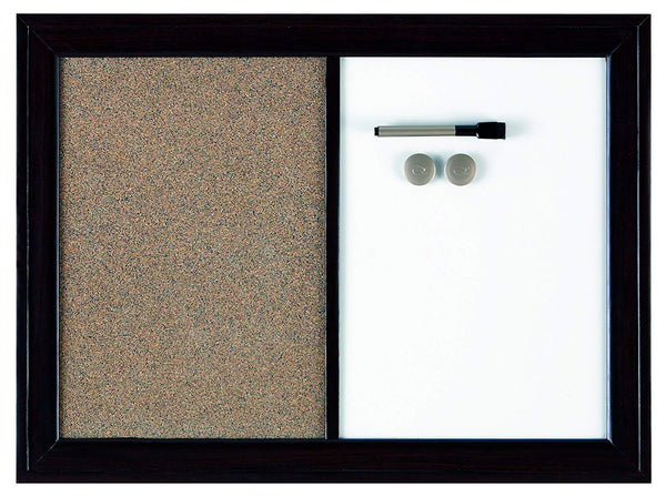 This versatile magnetic dry-erase & cork combination board. The magnetic dry-erase surface makes writing smooth and holds papers in place. The dense colored cork surface tacks up notes and to-do lists in plain sight. The two-tone, champagne and ebony frame looks great in any decor.