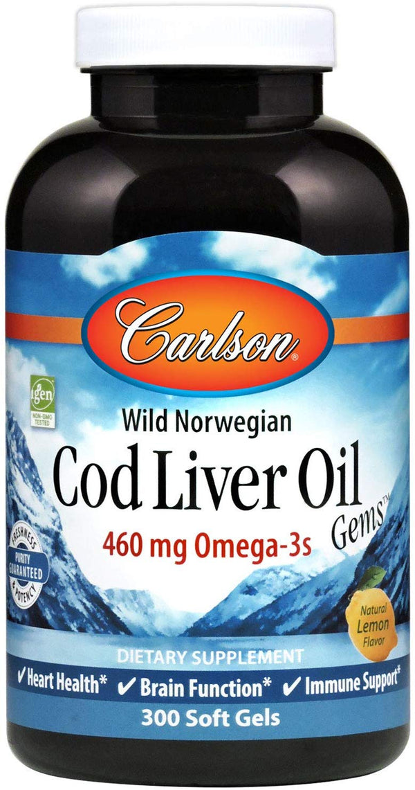 Carlson - - Cod Liver Oil, 460 mg Omega-3s, Norwegian, Sustainably Sourced, Lemon, 300 soft gels