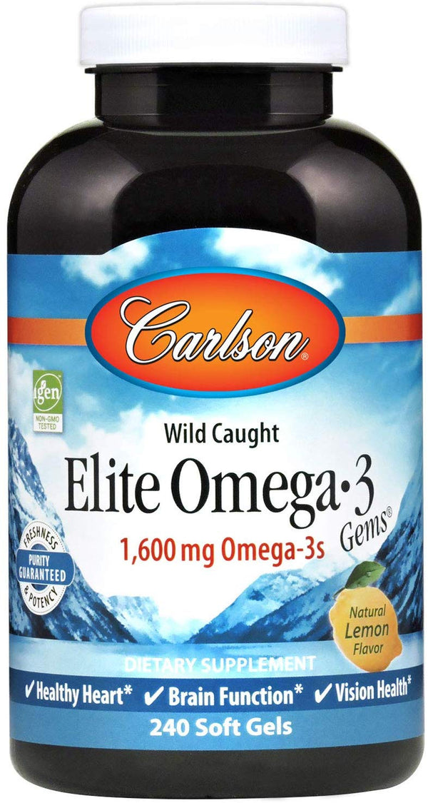 Carlson - - Elite Omega-3 Gems, 1600 mg Omega-3s, Heart, Brain & Vision Support, Wild Caught, Orange, 240 Soft gels