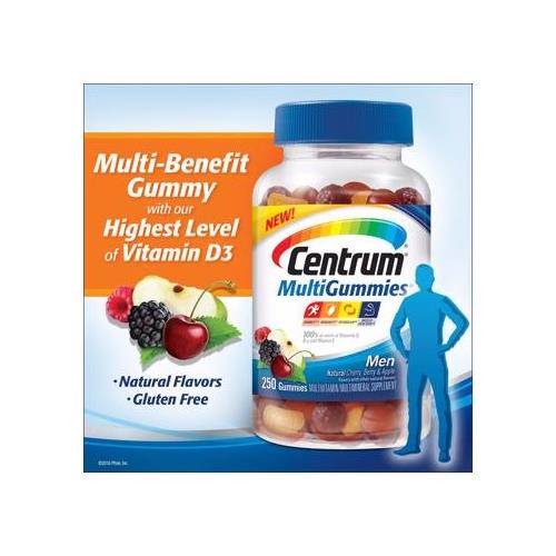Centrum MultiGummies Multivitamin/Multimineral Supplement Mens 250CT . The picture is for illustrated purposes, we should have the latest version of the product in stock.