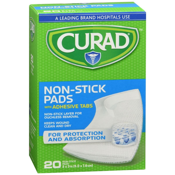 Curad - Non-Stick Pads with Adhesive Tabs 2 Inches x 3 Inches - 20 EA