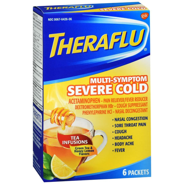 Theraflu - Multi-Symptom Severe Cold Packets Lipton Green Tea & Honey Lemon Flavor 6 EA