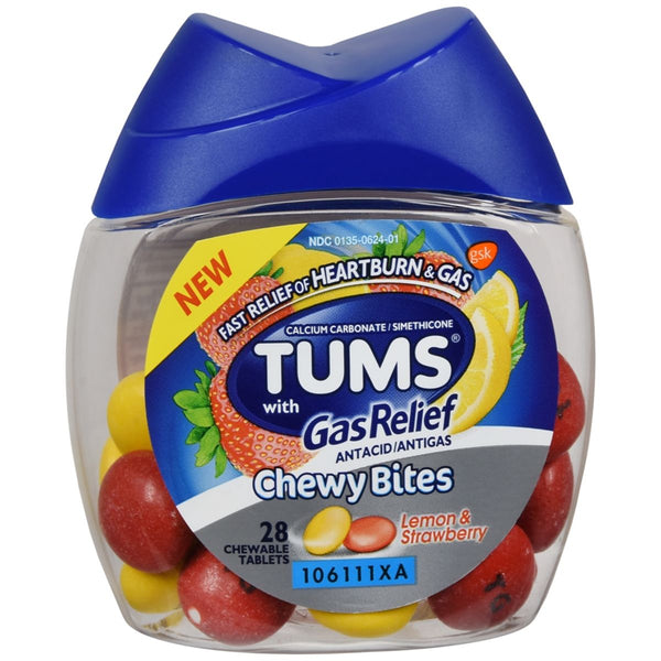 Tums - with Gas Relief Antacid/Antigas Chewy Bites Lemon & Strawberry - 28 EA