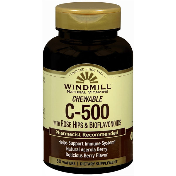 Windmill - Chewable C-500 with Rose Hips & Bioflavonoids Wafers Berry Flavor - 50 EA