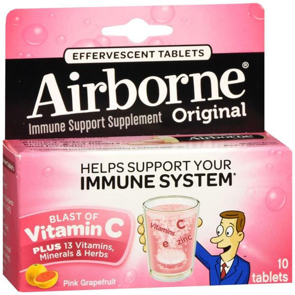 Airborne - Original Immune Support Supplement Effervescent Tablets Pink Grapefruit - 10 TB