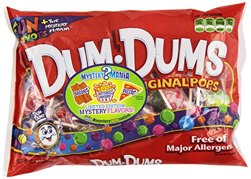Dum Dums® Pops Original. Since 1906. All your favorite flavors! New flavor! Savannah Blueberry, pop star winner! This product does not contain peanuts, tree nuts, milk, eggs, wheat or gluten. It has been manufactured on dedicated equipment. Made in the USA.