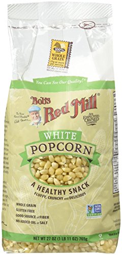 Bob's Red Mill White Popcorn is carefully selected from the very best crops of corn. When it pops, it bursts into wonderfully fluffy blossoms of corn with a delightful crunch. Popcorn is one of the best munching foods of all, containing only 60 calories and 2 grams of fiber per two cup serving. Bob's Red Mill Premium Quality White Popcorn (Packaging May Vary). Bob's Red Mill White Popcorn is carefully selected from the very best crops of corn