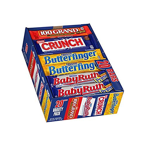 - Contains 8 Nestle Butterfinger Bars, 4 Nestle Crunch Bars, 4 Nestle Baby Ruth Bars, and 4 Nestle 100 Grand Bars.