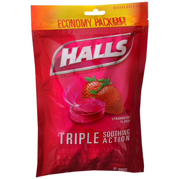 Halls - Cough Drops Suppressant Oral Anesthetic - Strawberry 80 Count Menthol