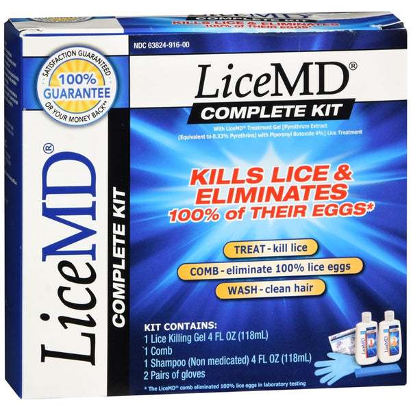Treatment Gel: Read warnings before use. Read leaflet inside carton for complete directions before use. Adults and children 2 years and over: Inspect: check each household member with a magnifying glass in bright light for lice/nits (eggs). Look for tiny nits near scalp, beginning at back of next and behind ears. Examine small sections of hair at a time. Unlike dandruff which moves when touched, nits stick to the hair. If either lice or nits are found, treat with this product. Treat: apply this product thoroughly to dry hair or other affected area. For head lice, first apply behind ears and to back of neck. Allow this product to remain on hair for other affected area for 10 minutes, but no longer. Wash area thoroughly with warm water and soap or shampoo. For head lice, towel dry hair and come out tangles. Remove lice and their eggs (nits): use a fine-tooth comb or the special lice/nit comb. Remove any remaining nits by hand (using a throw-away glove). Hair should remain slightly damp while removing nits. If hair dries during combing, dampen slightly with water. For head lice, part hair into sections. Do one section at a time starting on top of head. Longer hair may take 1 to 2 hours. Life a 1 to 2 inch wide strand of hair. Place comb as close to scalp as possible and comb with a firm, even motion away from scalp. Pin back each strand of hair after combing. Clean comb often. Wipe nits away with tissue and discard in a plastic bag. Seal bag and discard to prevent lice from coming back. After combing, thoroughly recheck for lice/nits. Repeat combing if necessary. Check daily for any lice/nits that you missed. A second treatment with this product must be done in 7 to 10 days to kill any newly hatched lice. If infestation continues, see a doctor for other treatments. Children under 2 years: ask a doctor. Store at 20-25 degrees C (68-77 degrees F_. Keep carton for important product information. See leaflet inside carton for additional information. Shampoo: For use after treatment with LiceMD Treatment Gel. Rinse hair with warm water and apply LiceMD Shampoo (Non-Medicated). Thoroughly massage shampoo into scalp and work into a lather. Be sure to shampoo behind ears and on back of neck too. Rinse thoroughly with warm water. Repeat if necessary to remove all traces of LiceMD Treatment Gel. Towel dry hair and come out tangles with a wide-tooth comb. This shampoo does not kill lice or their eggs (nits). Use this shampoo only after using the LiceMD Treatment Gel contained in this carton or another similar lice treatment product. Comb: For head lice: make sure you are in a well-lit area before beginning the comb out process. After shampooing, part hair into sections about 1/2 inch thick and 1 to 2 inches wide. Come one section at a time starting on the top of the head. Combing may take over one hour. Longer hair may take up to 2 hours or more. Lift a 1/2 inch thick and 1 to 2 inch wide section of hair at a time. Place the LiceMD comb as close to the scalp as possible. Comb from the roots to the tip of the hair with a firm, even motion away from scalp. Make sure that all of the hair goes through the teeth of the comb. Nits are found on the hair shaft near the roots of the hair, so it is important to get the teeth of the Lice MD comb very close to the scalp. Pin back each section of hair that you just finished combing using a bobby pin or hair clip. Take another small section of hair and repeat the combing process until all sections are complete. Hair should remain slightly damp while removing nits. If hair dries during combing, dampen slightly with warm water. After the comb-out process is complete, remove all bobby pins and hair clips and rinse with warm water. Thoroughly recheck for lice/nits. Repeat combing if necessary. Remove any remaining nits by hand (using a throw-away glove). Check daily for any lice/nits that you have missed. Remember to clean the LiceMD comb after while combing. Wipe nits off of LiceMD comb with a tissue or dry paper towel and discard in a plastic bag. Soak all combs, bobby pins and hair clips in hot water [above 54 degrees C (130 degrees F)] for at least 10 minutes when combing is complete. Seal bag and throw away to prevent lice from coming back. Read leaflet inside carton for complete directions before use. Keep carton for important product information. Lice treatment is for adults and children 2 years and older. See leaflet inside carton for directions on how to use LiceMD Treatment gel to treat pubic (crab) lice and body lice.