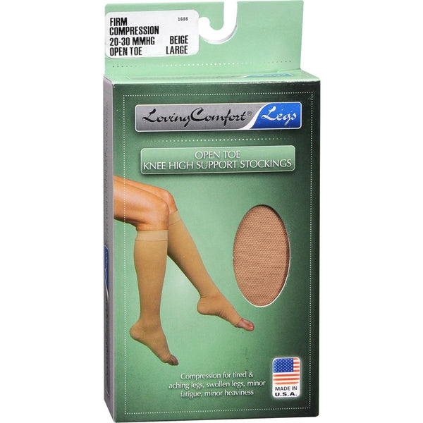 Loving Comfort - Knee High Support Stockings Firm Large Beige Open Toe 1 PR