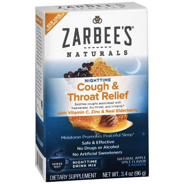 Zarbee's - Naturals Nighttime Cough & Throat Relief Drink Mix Packets Natural Apple Spice Flavor - 6 EA