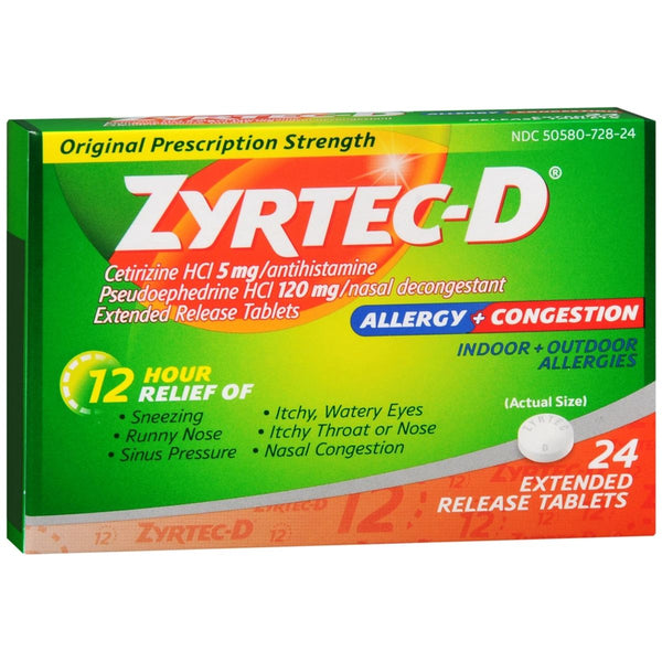 Zyrtec - D 12 Hour Allergy + Congestion Extended Release Tablets - 24 TB
